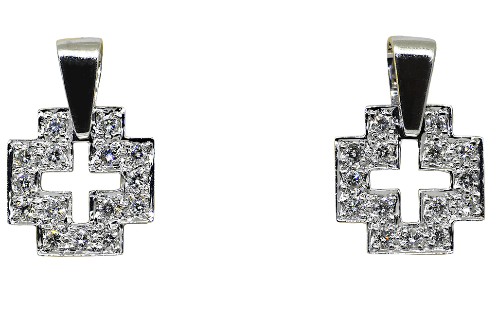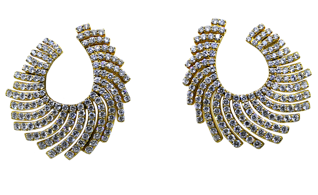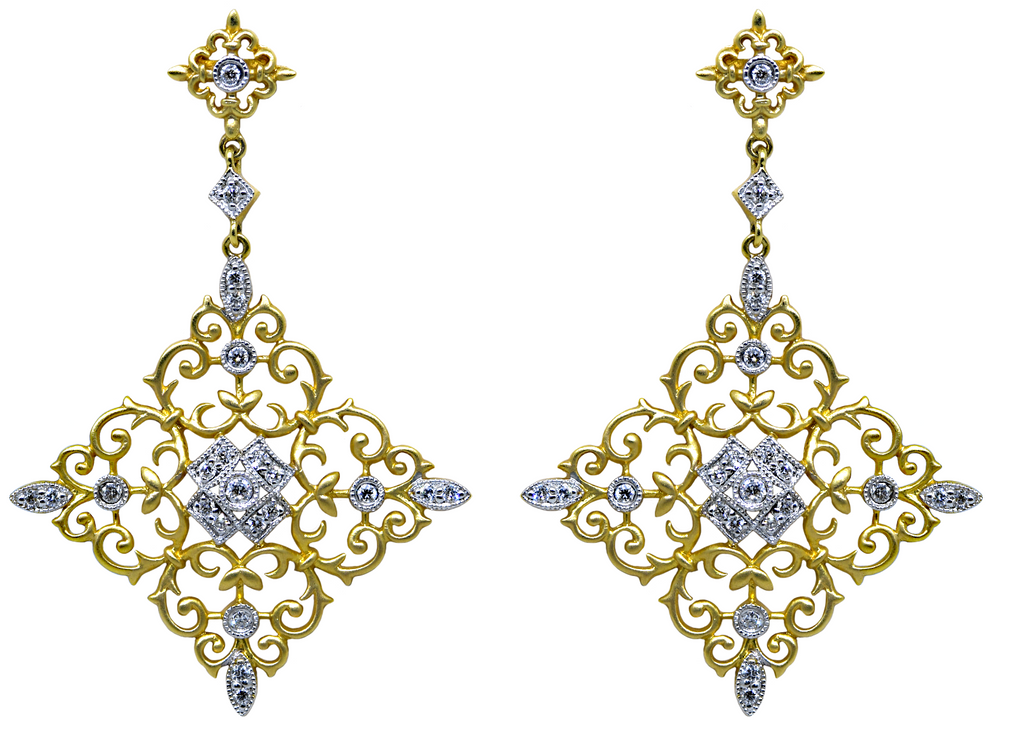 14KYW Vintage Watch Dial Dangle Earrings with Diamonds