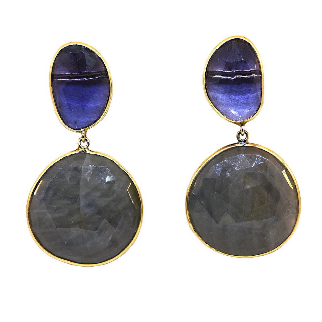 14K Yellow Gold Labradorite & Iolite Dangle Earrings