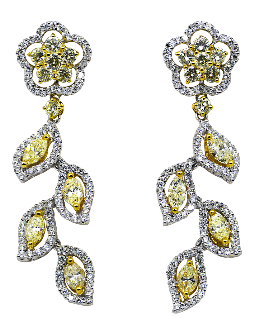 18K Fancy Yellow and White Diamond Dangle Earrings