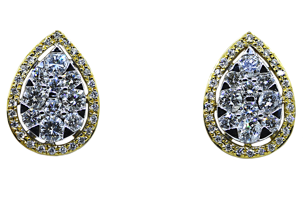 Elevate your jewelry collection with these stunning 14K white gold stud earrings, showcasing elegant pear-shaped diamonds accented with sparkling pavé detailing. The timeless design combines sophisticated geometry with brilliant sparkle, making these earrings perfect for both everyday elegance and special occasions. A versatile investment piece that complements any style.