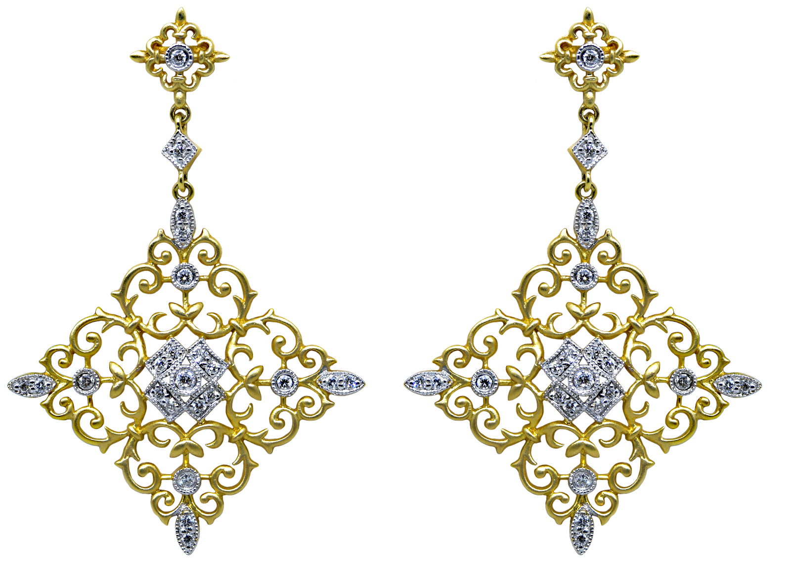 18KY Filigree Diamond Dangle Earrings