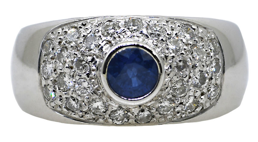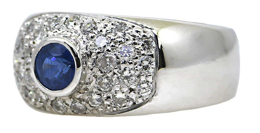 This striking men's ring showcases a brilliant sapphire center stone set in lustrous 10K white gold. The rich, deep blue of the sapphire creates an eye-catching focal point, while the white gold setting provides a sophisticated backdrop that enhances the stone's natural beauty. Perfect for those seeking a distinctive piece that combines elegance with timeless appeal.