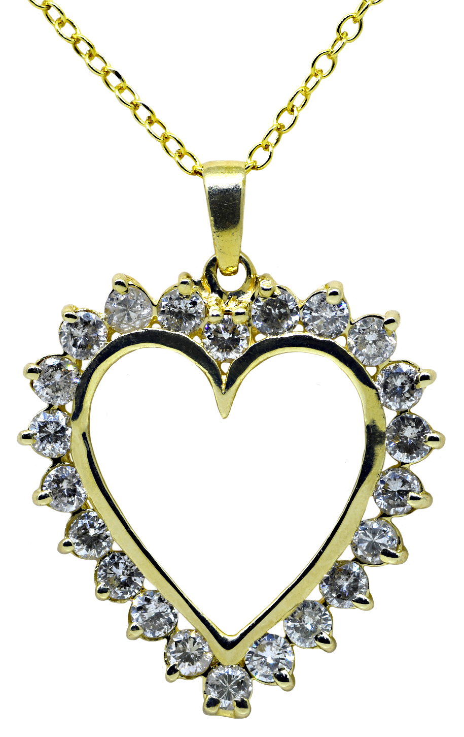 This exquisite pendant showcases the timeless elegance of 14K yellow gold, with an open heart silhouette adorned by brilliant round-cut diamonds. A romantic statement piece that captures light beautifully, it's the perfect way to express your affection or celebrate a special moment. Whether worn daily or reserved for meaningful occasions, this diamond heart pendant combines sophisticated design with enduring sparkle.