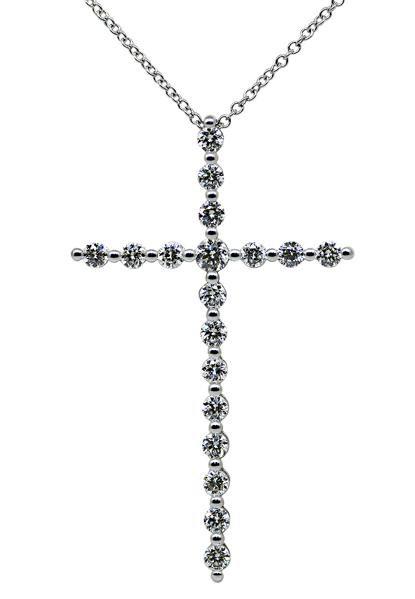 This diamond cross pendant has minimalist design with maximum impact making it perfect for any occasion. Crafted from 14K white gold, this cross features shining diamonds giving the piece and extra shine.