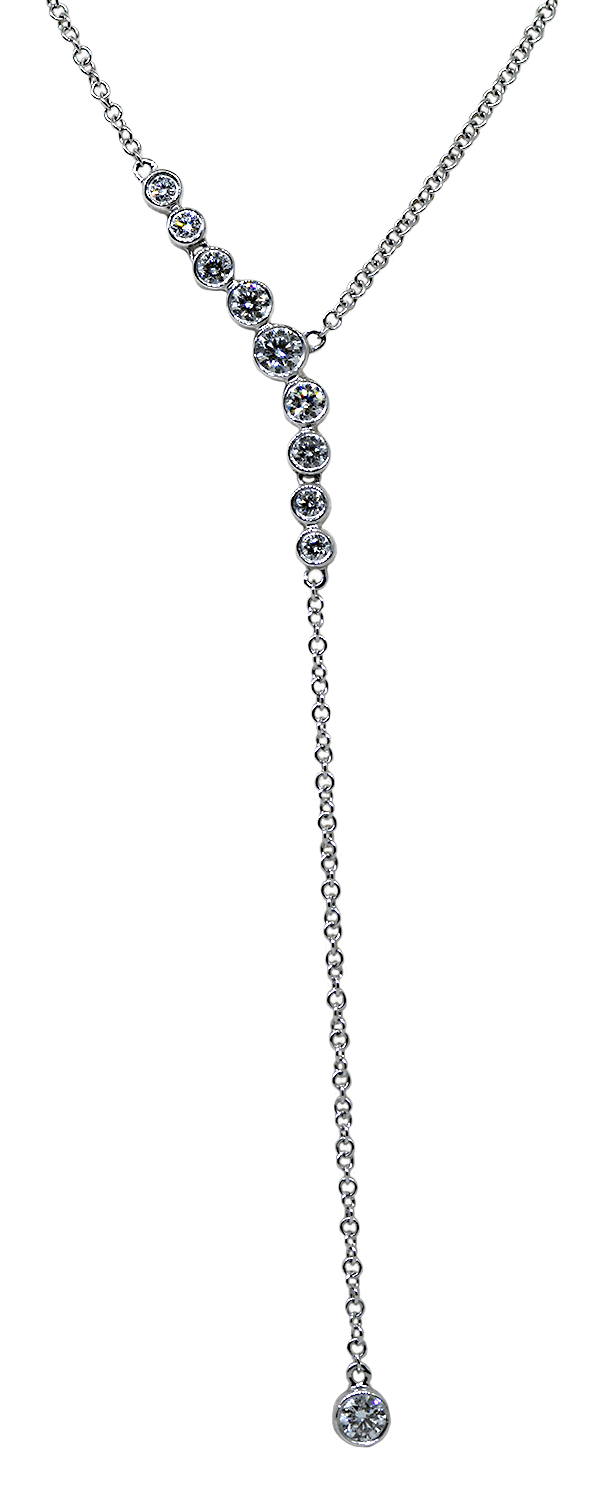 This elegant 14K white gold necklace showcases a distinctive "Y" silhouette adorned with sparkling round-cut diamonds. A timeless design that effortlessly transitions from day to evening, this piece adds sophisticated glamour to any wardrobe while the quality craftsmanship ensures lasting beauty and brilliance.