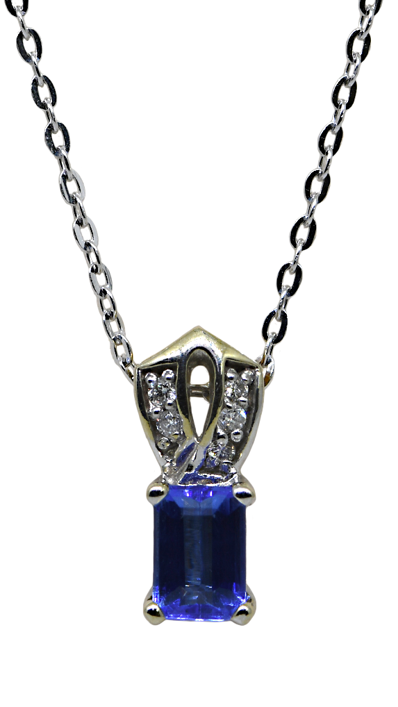 This stunning 14K white gold pendant showcases a captivating emerald-cut tanzanite as its centerpiece, elegantly framed by sparkling diamonds that catch the light from every angle. The sophisticated design combines the rich, mesmerizing blue-violet hues of tanzanite with the timeless brilliance of diamonds, creating a piece that commands attention and admiration. Perfect for those seeking a distinctive gemstone pendant that balances luxury with individuality, this necklace makes an unforgettable statement for special occasions or everyday elegance.