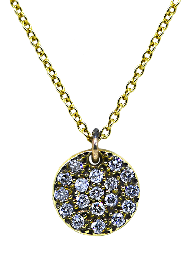 14KY Pave Diamond Disk Pendant with Chain