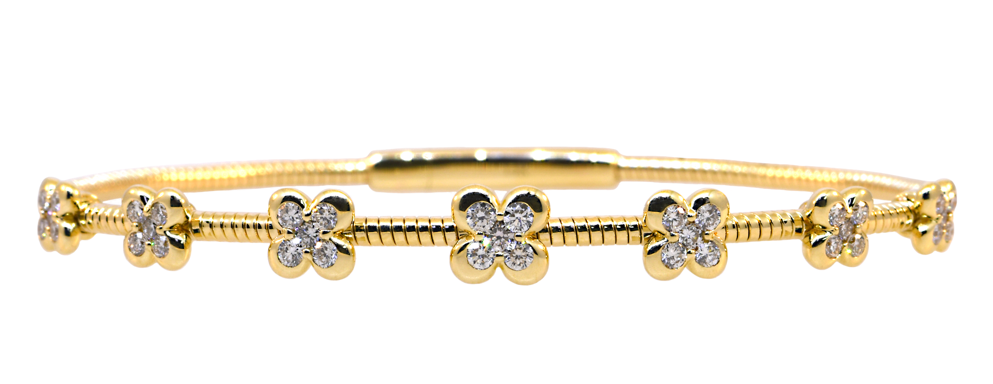 14KY Flexible Bangle Bracelet with 7 Diamond Flowers