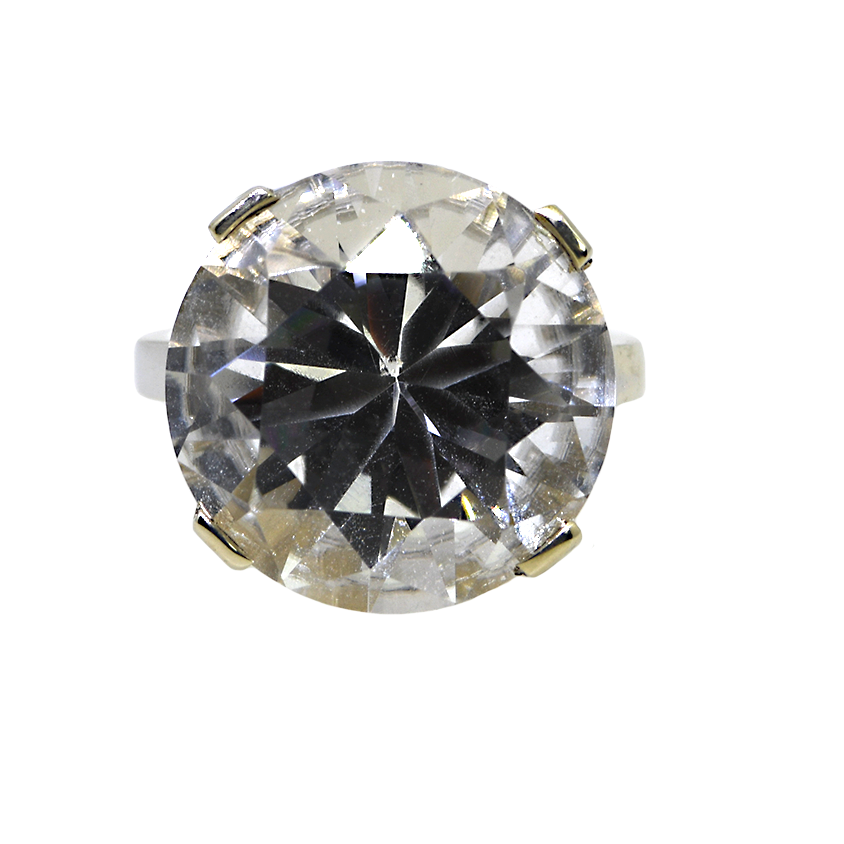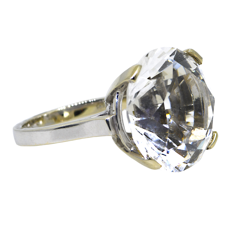 This stunning 14K white gold ring showcases a magnificent 15 carat solitaire quartz stone that commands attention. The timeless design lets the beautiful gemstone take center stage, making it an ideal choice for those seeking elegance and sophistication in a classic setting.