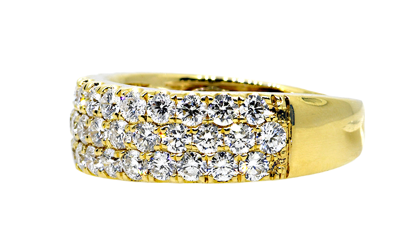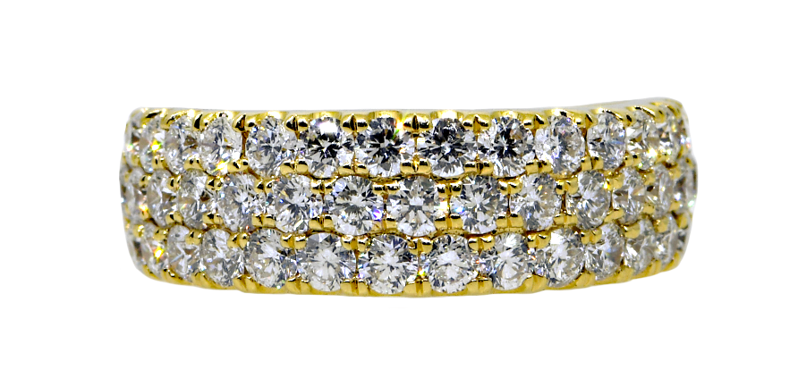 This elegant 14K yellow gold ring showcases multiple rows of brilliant diamonds that catch the light beautifully. Perfect for layering or wearing as a standalone statement piece, it combines timeless sophistication with everyday wearability. A versatile addition to any jewelry collection that celebrates your personal style.