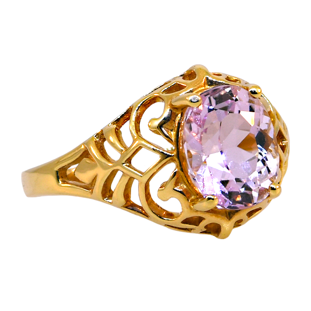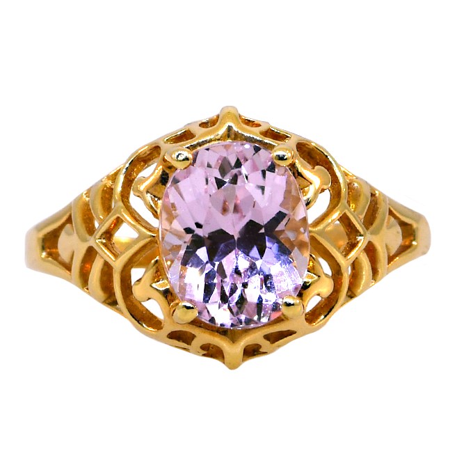 This stunning 14K yellow gold ring showcases a captivating kunzite gemstone that radiates with natural beauty. The warm glow of yellow gold perfectly complements the stone's delicate hues, creating an elegant piece that draws admiration. Perfect for those seeking a distinctive ring with genuine character and timeless appeal.