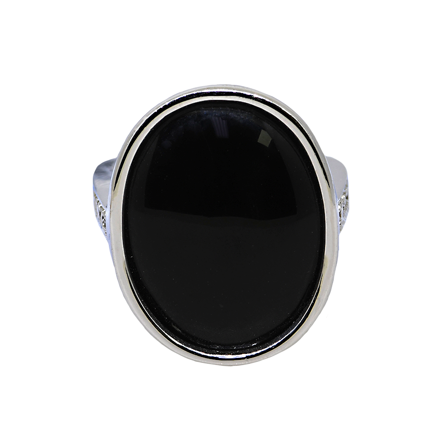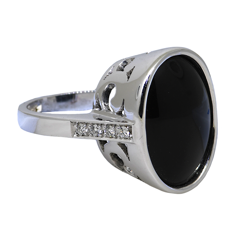 18KW Black Onyx &Diamond Ring