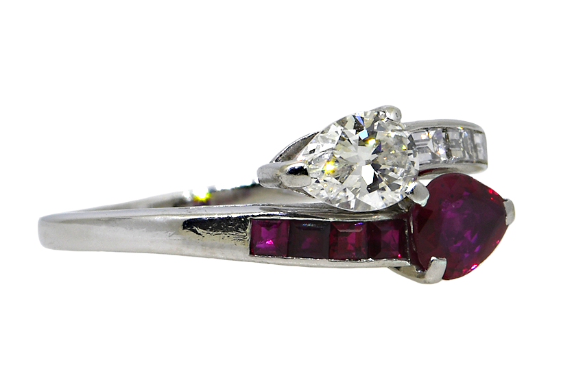 Platinum Ruby & Diamond Bypass Ring