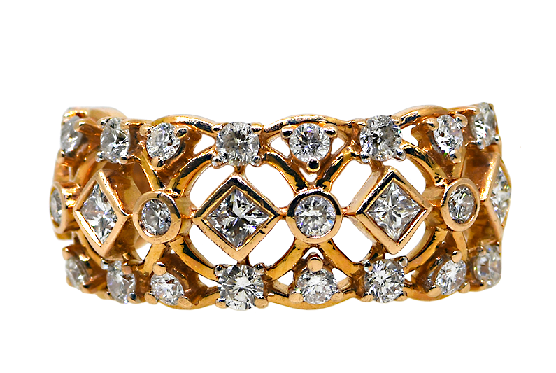 14KY Fancy Band with Round & Baguette Diamonds