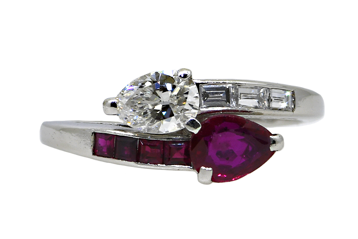 Platinum Ruby & Diamond Bypass Ring