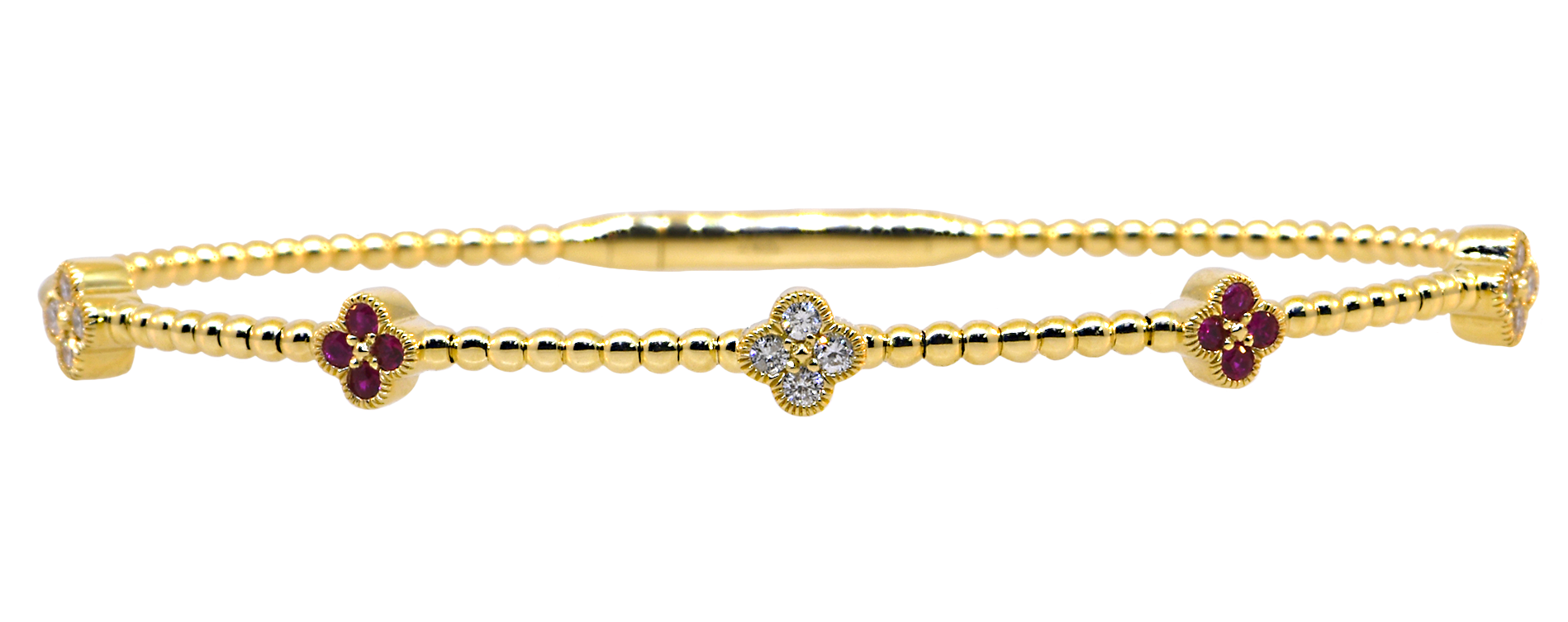 14KY Bracelet with Ruby & Diamond Clovers
