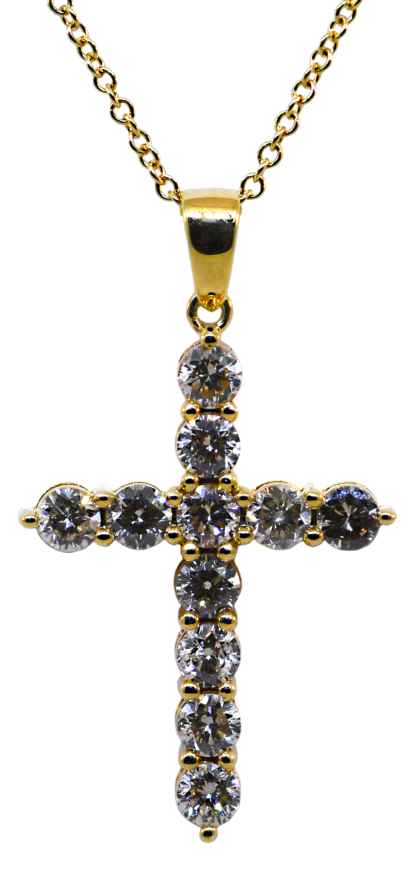 This exquisite cross pendant showcases the timeless elegance of 14K yellow gold, adorned with brilliant round-cut diamonds that catch light from every angle. A meaningful symbol of faith and devotion, this necklace combines classic design with luxurious craftsmanship, making it the perfect statement piece for everyday wear or special occasions.
